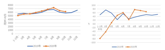 圖1 2019、2020年分月全社會(huì)用電量及其增速
