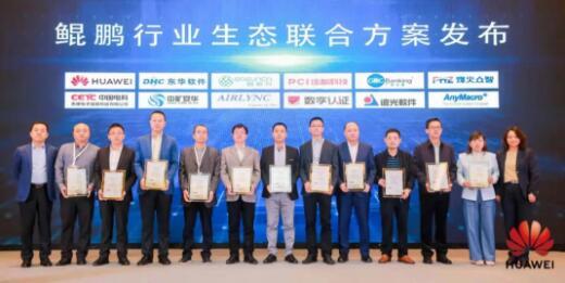 在活動現(xiàn)場,華為與多家合作伙伴共同發(fā)布了鯤鵬行業(yè)生態(tài)聯(lián)合方案,并授予合作伙伴技術認證證書。