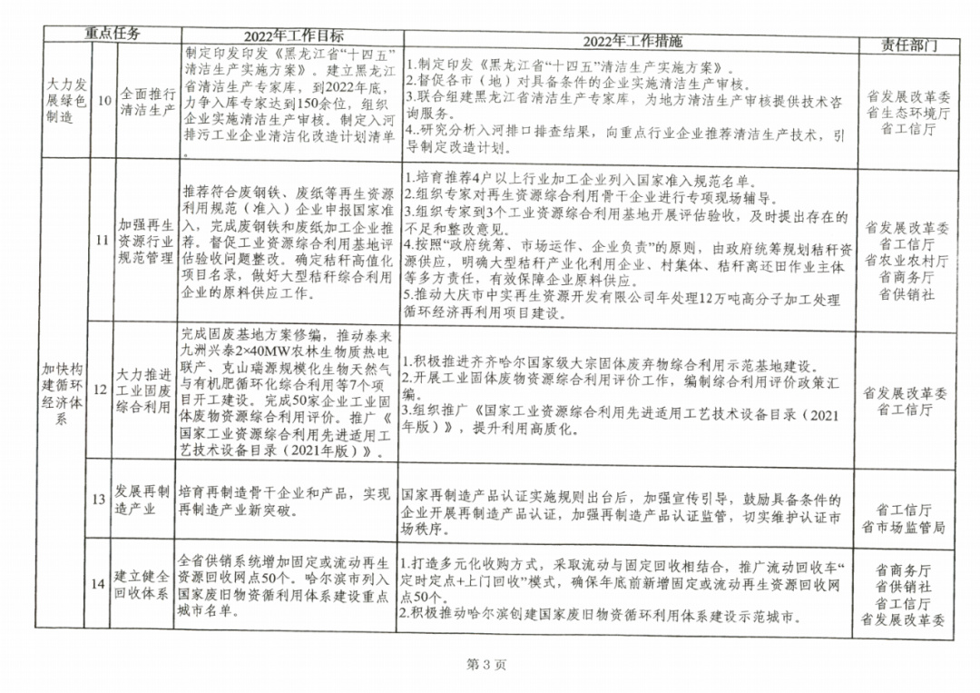 資源綜合利用基地建設(shè)優(yōu)化。加快資源循環(huán)發(fā)展,推進(jìn)齊齊哈爾、大慶、雞西、七臺(tái)河等國(guó)家級(jí)資源綜合利用基地建設(shè),支持基地內(nèi)的企業(yè)開展工業(yè)資源綜合利用共性關(guān)鍵技術(shù)裝備研發(fā)應(yīng)用,著力提升基地技術(shù)水平和產(chǎn)業(yè)服務(wù)能力。支持工業(yè)園區(qū)和重點(diǎn)企業(yè)開展資源循環(huán)利用改造和示范,形成典型行業(yè)可復(fù)制推廣技術(shù)路線和模式。