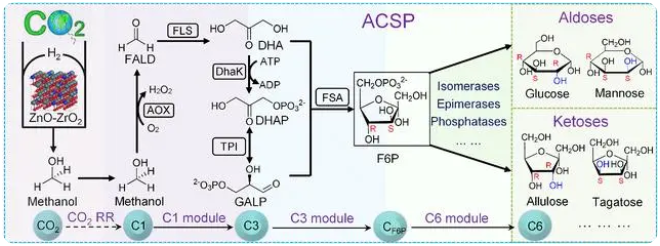 據(jù)科技日報,中國科學院天津工業(yè)生物技術研究所與大連化學物理研究所的科研團隊,在二氧化碳合成淀粉基礎上,又取得了一個重大突破:他們成功構建了靈活性、高效性及多功能性的人工生物系統(tǒng),實現(xiàn)了多種己糖從頭精準合成,解決了糖分子立體結構可控的難題 ,為擺脫自然合成途徑、利用二氧化碳創(chuàng)造多樣的糖世界提供了可能。該研究成果于8月16日發(fā)表在國內(nèi)期刊《科學通報》上。