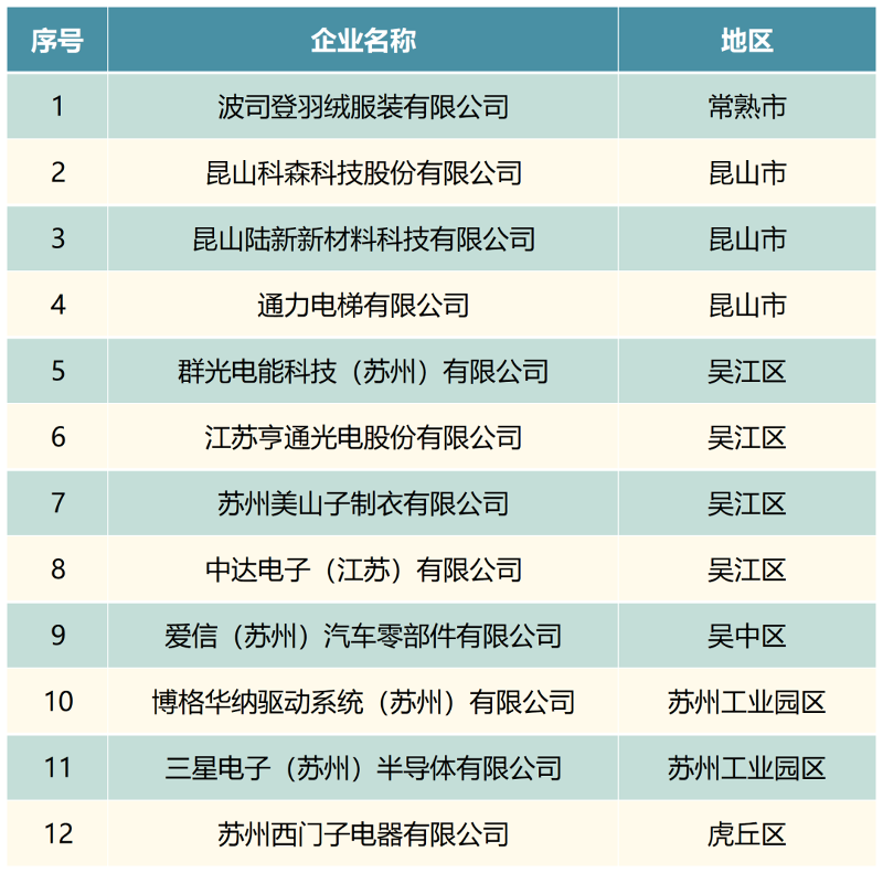 蘇州市“近零碳”工廠(第二批)名單如下: