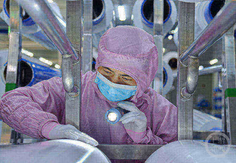 技術(shù)工人在對(duì)鋰電池隔膜進(jìn)行檢測(cè)。圖片來(lái)源/星源材質(zhì)