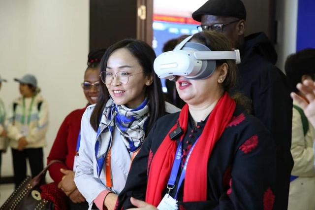 媒體代表使用VR設(shè)備感受光伏項(xiàng)目現(xiàn)場(chǎng)。