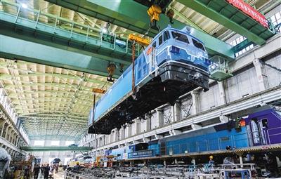 中車大同電力機車有限公司研制的全球氫燃料電池裝機功率最大的“寧東號”機車。 李冬賓 攝