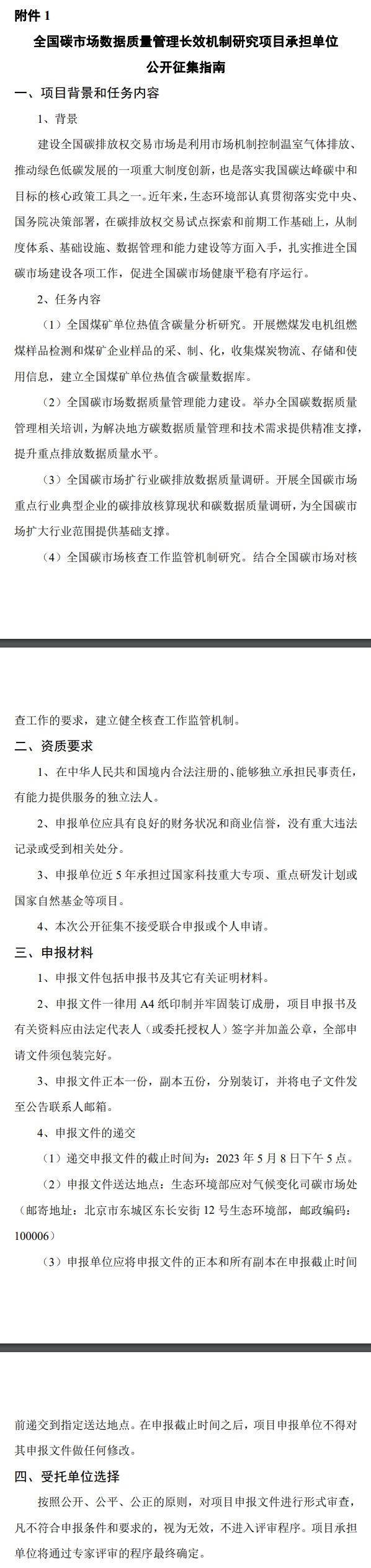 附 件:1.全國碳市場數(shù)據(jù)質(zhì)量管理長效機制研究項目承擔(dān)單位公開征集指南
