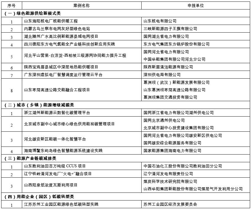 經(jīng)項(xiàng)目單位申報(bào)、省級(jí)能源主管部門(mén)推薦、案例評(píng)選、網(wǎng)上公示,將“山東海陽(yáng)核電廠核能供暖工程”等23個(gè)案例收錄為能源綠色低碳轉(zhuǎn)型典型案例,現(xiàn)將名單予以公布。下一步,將匯編典型案例集,并組織開(kāi)展經(jīng)驗(yàn)交流等工作。