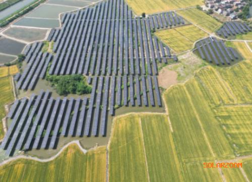 “領(lǐng)跑丹陽”光伏電站位于江蘇省丹陽市延陵鎮(zhèn),項目利用大呂村、趙巷村等5個行政村累計3200畝魚塘水域資源,采用漁光互補(bǔ)的方式建成。項目總投資約7.5億元,是蘇南五市目前為止并網(wǎng)規(guī)模最大的光伏電站。