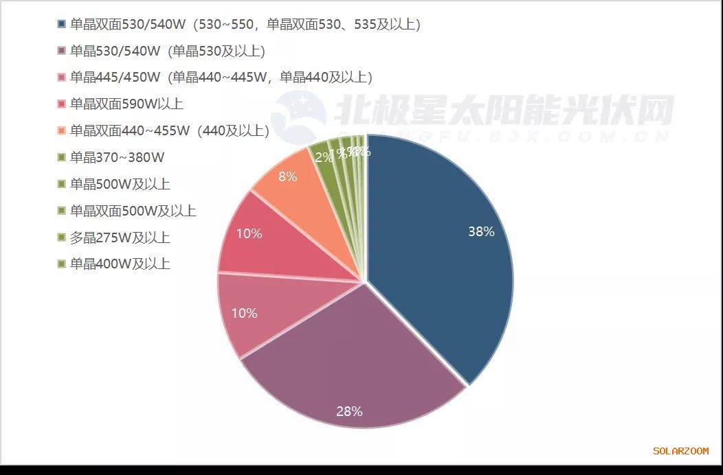 具體來看,2021年1月12日,中核匯能率先開標2021年度光伏組件集中采購,隆基、東方日升、天合3家擬瓜分了1.3GW組件大單,其中535/540W組件招標規(guī)模912.7MW,占比69%。