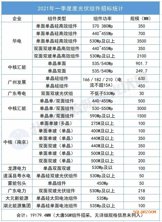 2021年2月9日,另一大央企華電發(fā)布2021年第一批單晶硅光伏組件集中采購公告,其中,530W及以上規(guī)格組件招標規(guī)模為5.6GW,占比高達80%。