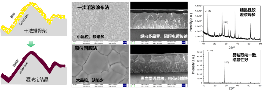 筆者認為“原位固膜”技術(shù)是鈣鈦礦研發(fā)史上的一次思想飛躍,是打破常規(guī)認知的靈感火花,也是另外兩項技術(shù)得以應用的基礎。