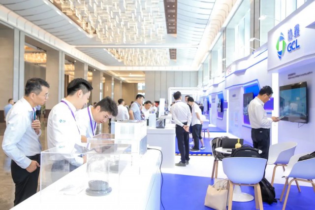 應(yīng)主辦方安排,協(xié)鑫集團在會場外特設(shè)協(xié)鑫展臺,重磅呈現(xiàn)“數(shù)字能源智算平臺”“下一代光伏組件”“光儲融會”和顆粒硅、GCL-PHY磷酸鐵鋰、硅酸負(fù)極材料、智能組串式儲能系統(tǒng)等“黑科技”實物矩陣,吸引了眾多與會者駐足觀看。