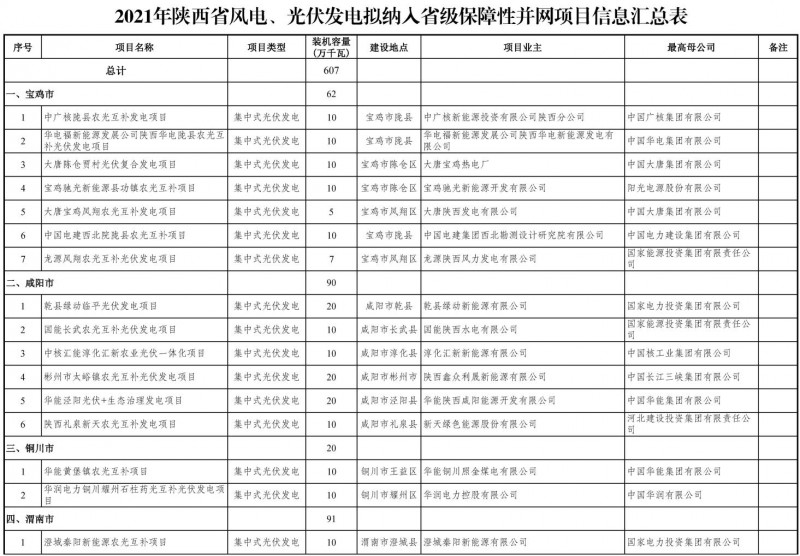 關(guān)于陜西省2021年風電、光伏發(fā)電保障性并網(wǎng)項目競爭性配置結(jié)果的公示