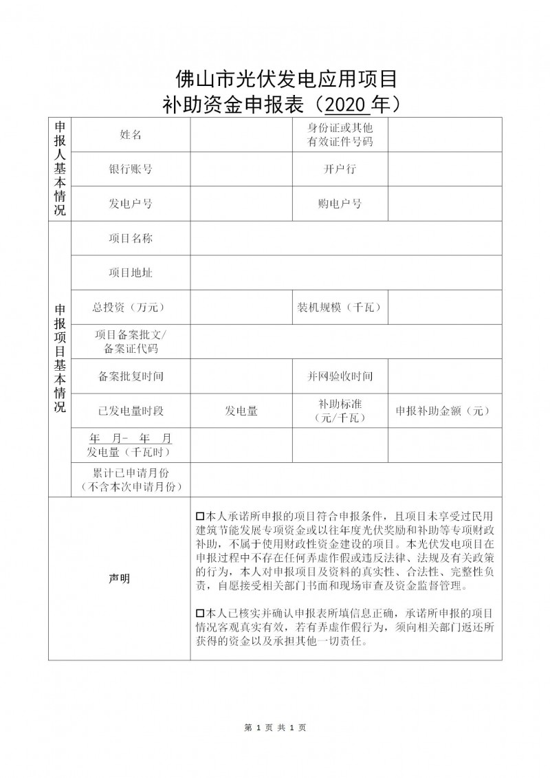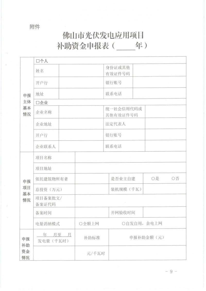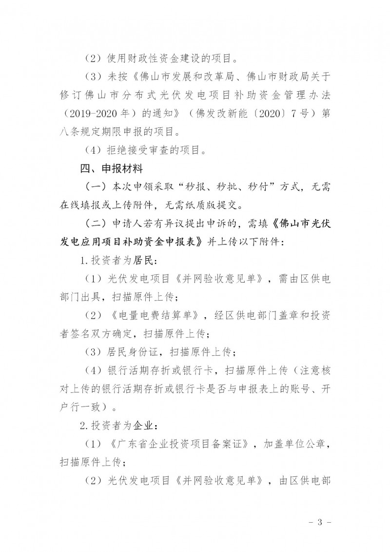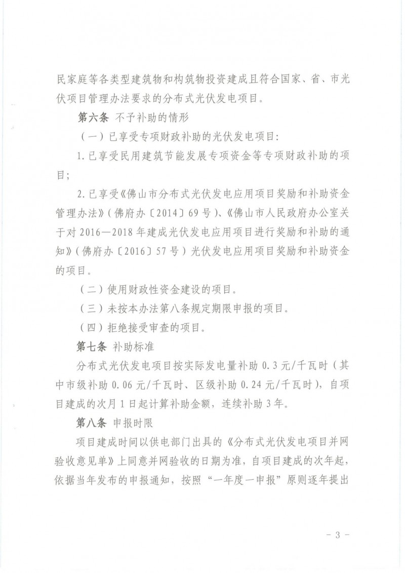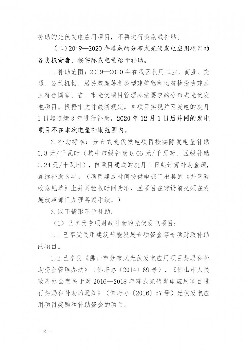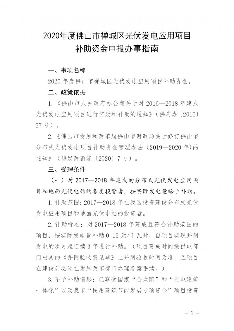 根據(jù)《佛山市人民政府辦公室關于對2016—2018年建成光伏發(fā)電應用項目進行獎勵和補助的通知》(佛府辦〔2016〕57號,見附件1)、《佛山市發(fā)展和改革局佛山市財政局關于修訂佛山市分布式光伏發(fā)電項目補助資金管理辦法(2019—2020年)的通知》(佛發(fā)改新能〔2020〕7號,見附件2)的文件要求,現(xiàn)開展我區(qū)2020年度光伏補助資金申報工作,并將有關事項通知如下: