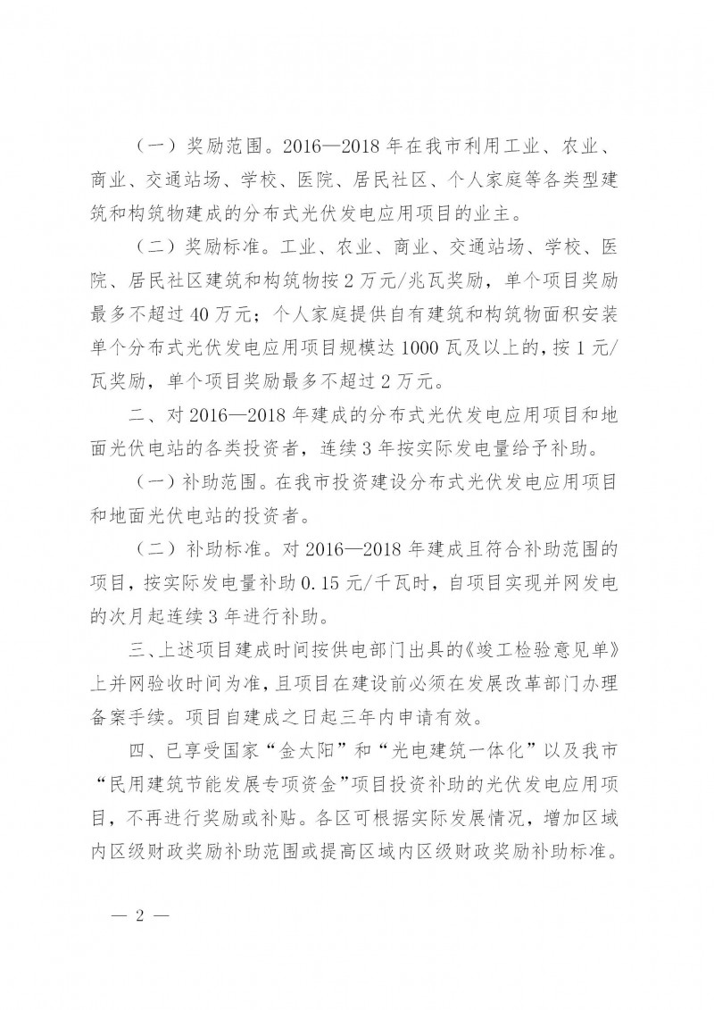 2017—2018年建成的分布式光伏發(fā)電項目,按實際發(fā)電量補助0.15元/千瓦時;2019—2020年建成的分布式光伏發(fā)電項目,按實際發(fā)電量補助0.3元/千瓦時。
