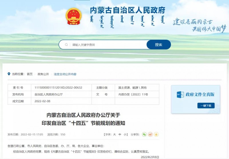 2月15日,內蒙古自治區(qū)人民政府發(fā)布關于印發(fā)自治區(qū)“十四五”節(jié)能規(guī)劃的通知,通知中多次提到光伏: