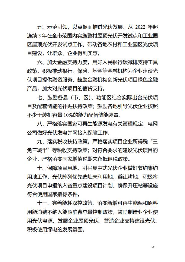 鼓勵各縣(市、區(qū))、功能區(qū)結(jié)合實際出臺光伏項目及配套儲能的補貼扶持政策;鼓勵各地引導(dǎo)光伏企業(yè)按照不少于裝機容量10%的能力配備儲能裝置。