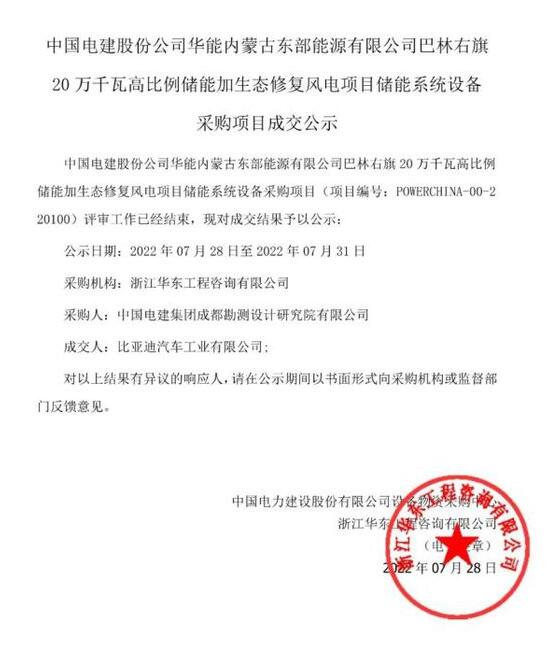 公告顯示,比亞迪汽車工業(yè)有限公司成功中標(biāo)該項目。