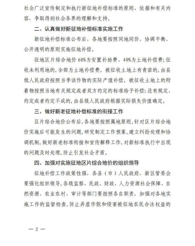 此外,根據(jù)黔西南州征地區(qū)片綜合地價補償更新標(biāo)準(zhǔn),各地要按照同地同價、協(xié)調(diào)平衡、 公開透明的原則實施征地補償。征地區(qū)片綜合地價60%為安置補助費、40%為土地補償費;征 收未利用地的,全部為土地補償費。被征收土地上有青苗的,由縣級人民政府按照當(dāng)季該作物的實際產(chǎn)值補償。被征收土地上的附著物按照當(dāng)?shù)赜嘘P(guān)規(guī)定或者雙方約定的標(biāo)準(zhǔn)給予補償;沒有規(guī)定、 約定或者約定不成的,由縣級人民政府根據(jù)實際損失價值確定。