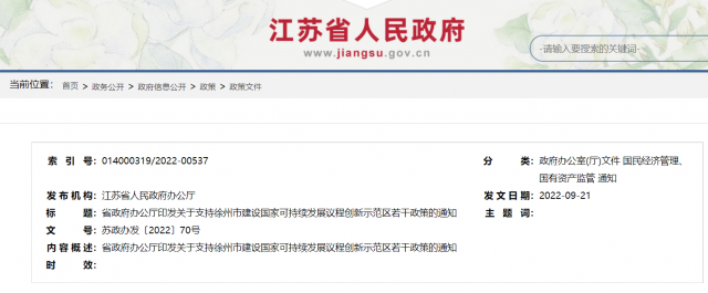 省政府辦公廳印發(fā)關(guān)于支持徐州市建設(shè)國家可持續(xù)發(fā)展議程創(chuàng)新示范區(qū)若干政策的通知