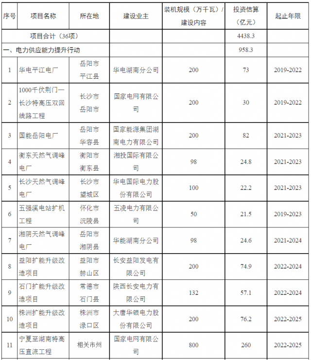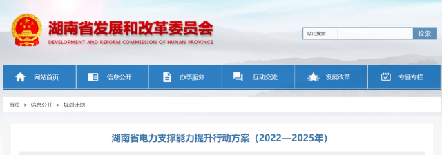 2022年10月13日,湖南省發(fā)改委根據(jù)省政府“三大支撐八項(xiàng)重點(diǎn)”部署,制定《湖南省電力支撐能力提升行動(dòng)方案(2022—2025年)》。方案中提出: