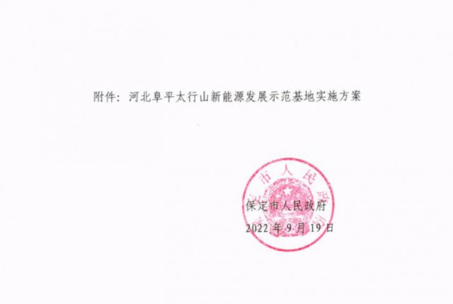 一、同意阜平縣充分發(fā)揮風電、光伏資源優(yōu)勢,全面推進鄉(xiāng)村振興和能源結(jié)構(gòu)轉(zhuǎn)型,建設(shè)太行山新能源發(fā)展示范基地。