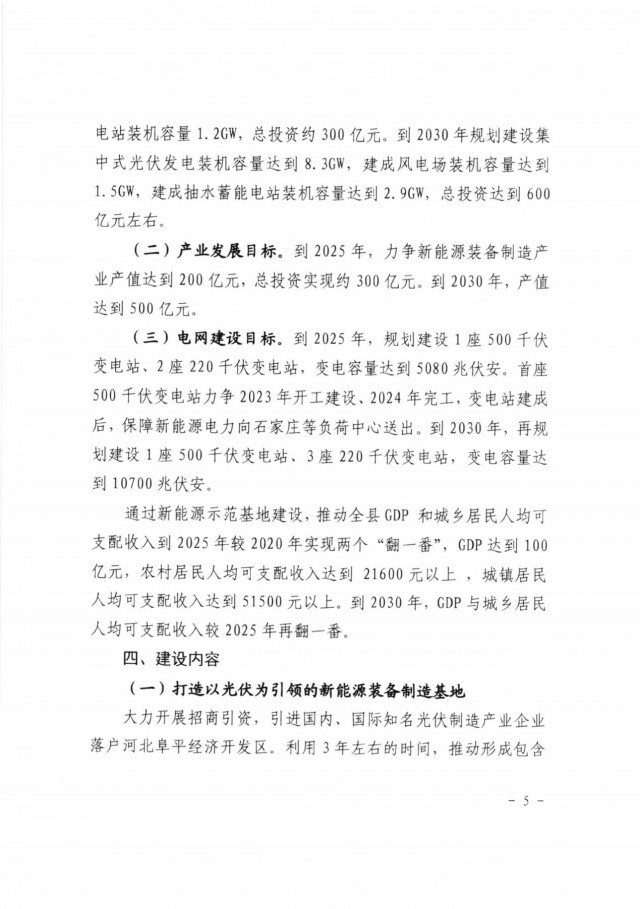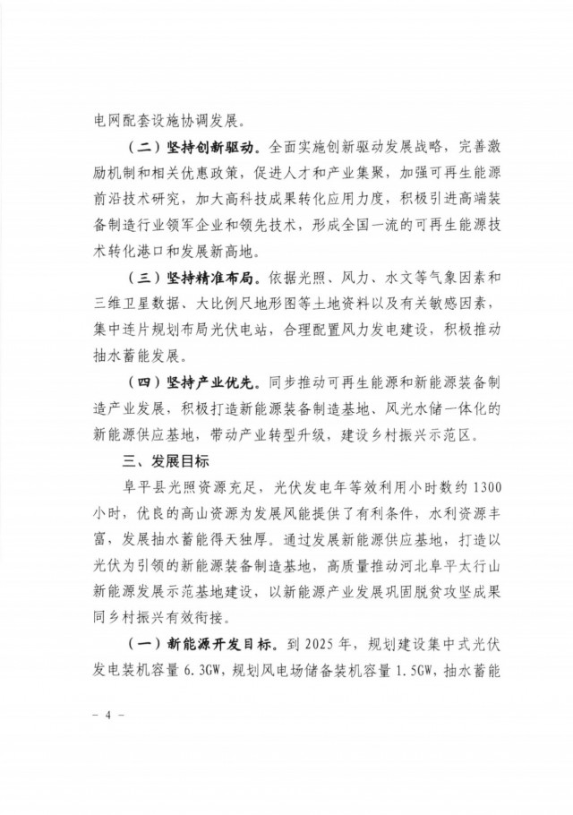 三、原則同意《河北阜平太行山新能源發(fā)展示范基地實施方案》提出的新能源開發(fā)目標,到2025年規(guī)劃建設(shè)集中式光伏6.3GW、風電1.5GW、抽水蓄能1.2GW,2030年在此基礎(chǔ)上進一步實現(xiàn)高質(zhì)量跨越式發(fā)展。