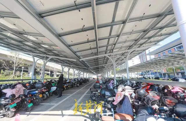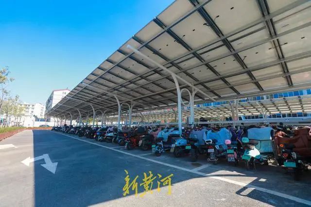 山東大學(xué)國家大學(xué)科技園停車場的車棚采用光伏一體化結(jié)構(gòu),光伏面板架設(shè)于停車位上方的鋼桁架上,以光伏電池板代替車棚頂面,既能避免車輛日曬雨淋,所發(fā)出的電力又能為園區(qū)、車棚提供照明,起到一舉多得的效果。車棚內(nèi)安裝了充電樁、儲能等配套設(shè)施,可以為電動汽車、電動自行車充電,實現(xiàn)了光儲充一體化,綠色低碳場景再添新貌,進(jìn)一步邁向智慧零碳園區(qū)。