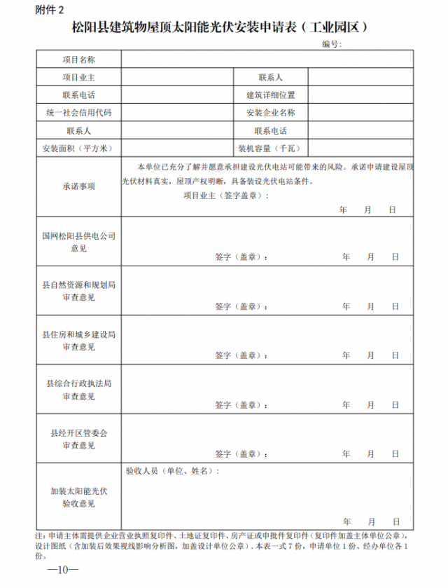 2.《松陽縣建筑物屋頂太陽能光伏安裝申請表》(工業(yè)園區(qū))
