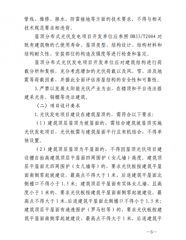 1.屋頂光伏項目建設(shè)需符合相關(guān)規(guī)劃,設(shè)計施工符合《浙江省整縣(市、區(qū))推進屋頂分布式光伏開發(fā)工作導(dǎo)則》《浙江既有民用建筑加裝太陽能光伏系統(tǒng)設(shè)計導(dǎo)則》和本通知相關(guān)要求,并與周邊建筑物、景觀相協(xié)調(diào)。