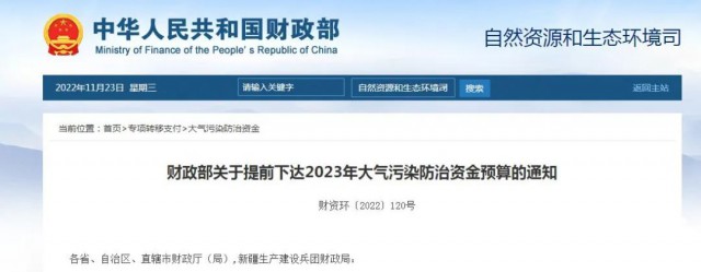財政部關(guān)于提前下達2023年大氣污染防治資金預(yù)算的通知