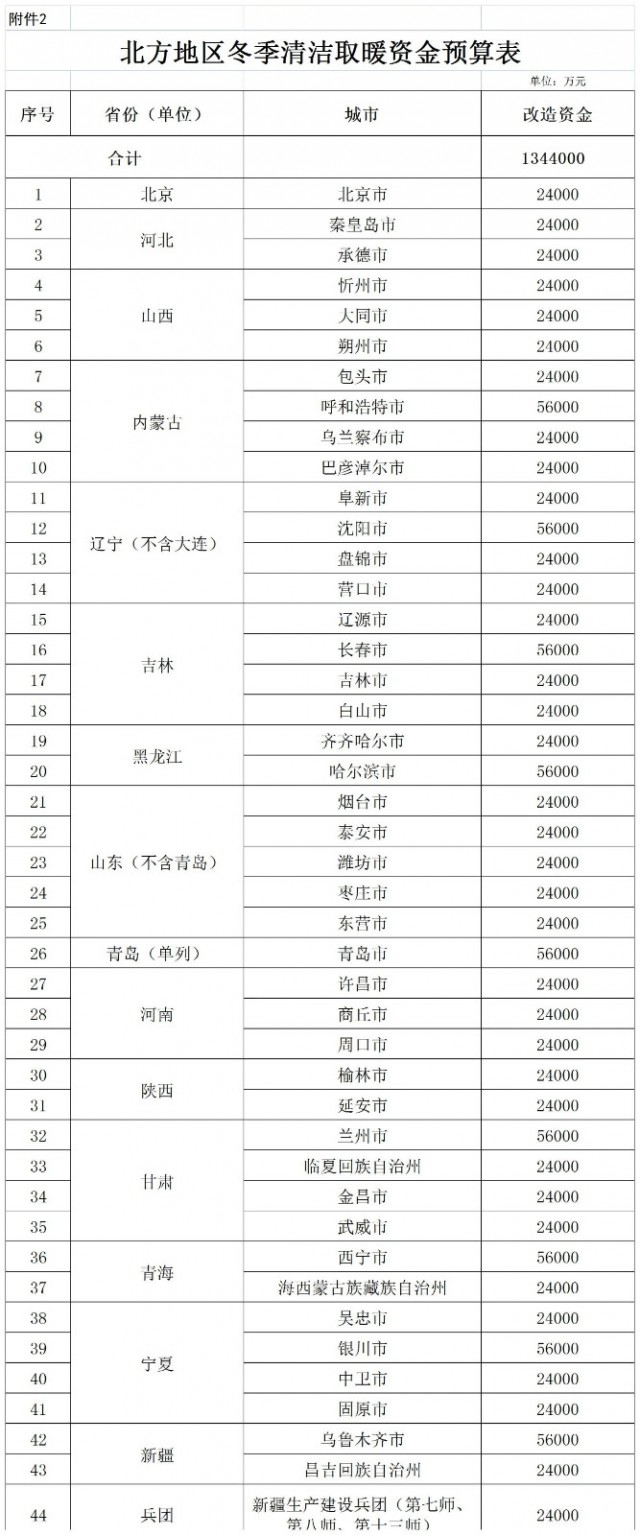 二、北方地區(qū)冬季清潔取暖資金額度詳見附件2、3。請相關(guān)省抓緊撥付資金,會同有關(guān)部門督促相關(guān)城市積極穩(wěn)妥地做好清潔取暖工作。