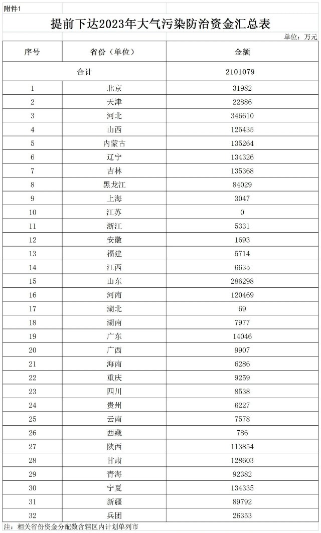 附件:1.提前下達2023年大氣污染防治資金匯總表