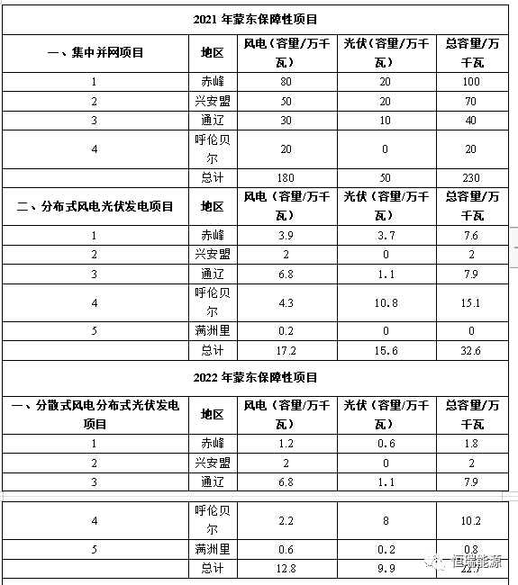 2、(蒙東地區(qū))2021~2022年可再生能源指標分配情況表