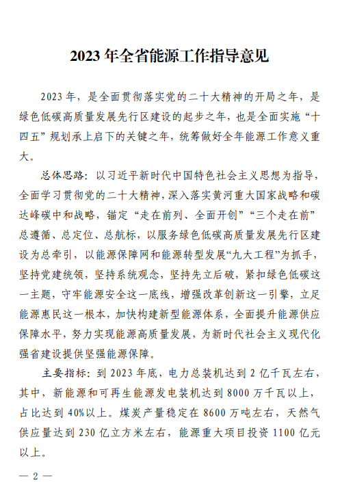 山東省能源局關(guān)于印發(fā)2023年全省能源工作指導意見的通知