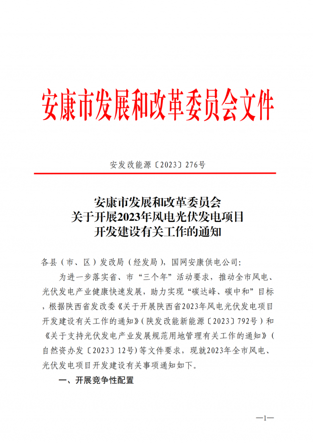 5月15日,安康市發(fā)展和改革委員會(huì)發(fā)布了《關(guān)于開(kāi)展2023年風(fēng)電光伏發(fā)電項(xiàng)目 開(kāi)發(fā)建設(shè)有關(guān)工作的通知》,其中提到了近日,陜西省發(fā)改委發(fā)布了《關(guān)于開(kāi)展陜西省2023年風(fēng)電光伏發(fā)電項(xiàng)目開(kāi)發(fā)建設(shè)有關(guān)工作》的通知。