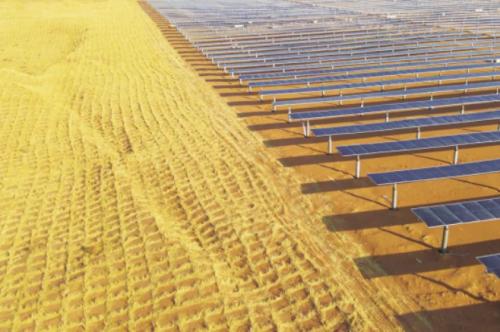 與一般的新能源電站不同,在沙漠投資新能源項目還必須解決荒漠治理的難題。所以這個項目建設(shè)之處,國家能源集團龍源電力就運用“林光互補”“農(nóng)光互補”技術(shù),采取“林草結(jié)合”模式,實現(xiàn)“板上發(fā)電、板間種植、板下修復”新格局,形成光、林、草相結(jié)合的林沙產(chǎn)業(yè)新模式。