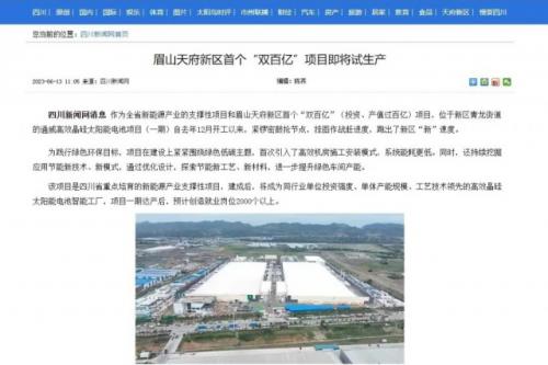 報道指出,作為全省新能源產(chǎn)業(yè)的支撐性項目和眉山天府新區(qū)首個“雙百億”(投資、產(chǎn)值過百億)項目,位于新區(qū)青龍街道的通威高效晶硅太陽能電池項目(一期)自去年12月開工以來,緊鑼密鼓搶節(jié)點,掛圖作戰(zhàn)趕進度,跑出了新區(qū)“新”速度。該項目是四川省重點培育的新能源產(chǎn)業(yè)支撐性項目,建成后,將成為同行業(yè)工藝技術(shù)領(lǐng)先的高效晶硅太陽能電池智能工廠,項目一期達產(chǎn)后,預(yù)計創(chuàng)造就業(yè)崗位2000個以上。