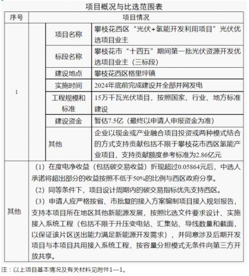 攀枝花市“十四五”期間第一批光伏資源開發(fā)優(yōu)選項目業(yè)主(三標段)比選公告