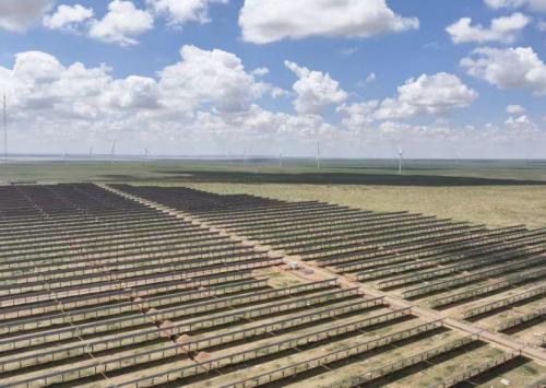 阿旗京能20萬千瓦光伏項(xiàng)目,總裝機(jī)容量200MW(配置30MW/60MWh儲能設(shè)施),按照牧光互補(bǔ)的模式進(jìn)行建設(shè),采用固定式高支架方案,安裝535Wp單晶硅雙面雙玻電池組件374400塊,225kW的組串式逆變器896臺,35kV集電線路10回,與30萬千瓦風(fēng)電項(xiàng)目共用1座220kV升壓站,以1回220kV送出線路(長度22km)接至查干淖爾電廠500kV變電站,總投資11.5億元,屬于錫盟400萬千瓦特高壓新能源基地項(xiàng)目之一。