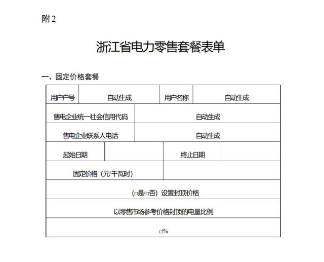 2.浙江省電力零售套餐表單