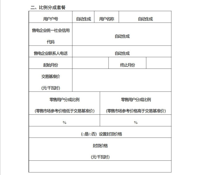 2.比例分成套餐:售電公司與零售用戶約定分成基準價和分成比例,參照零售套餐參考價格進行收益分享、風險共擔的零售套餐;