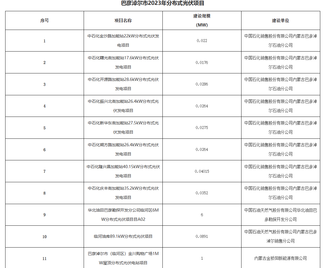 10月26日,內(nèi)蒙古巴彥淖爾市公示了2023年分散式風(fēng)電、分布式光伏項目優(yōu)選結(jié)果其中,光伏項目30個,規(guī)模約58.15MW;風(fēng)電項目2個,規(guī)模為98MW。
