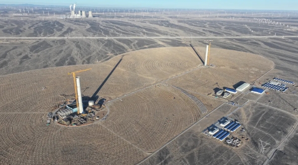 在距離格爾木700多公里的甘肅省瓜州縣,三峽集團(tuán)正在建設(shè)全球首個(gè)“雙塔一機(jī)”風(fēng)光熱儲(chǔ)一體化項(xiàng)目——三峽能源瓜州70萬(wàn)千瓦“光熱儲(chǔ)能+”項(xiàng)目,其中的子項(xiàng)目——10萬(wàn)千瓦光熱項(xiàng)目(以下簡(jiǎn)稱“瓜州項(xiàng)目”)是全球首個(gè)“雙塔一機(jī)”光熱電站。