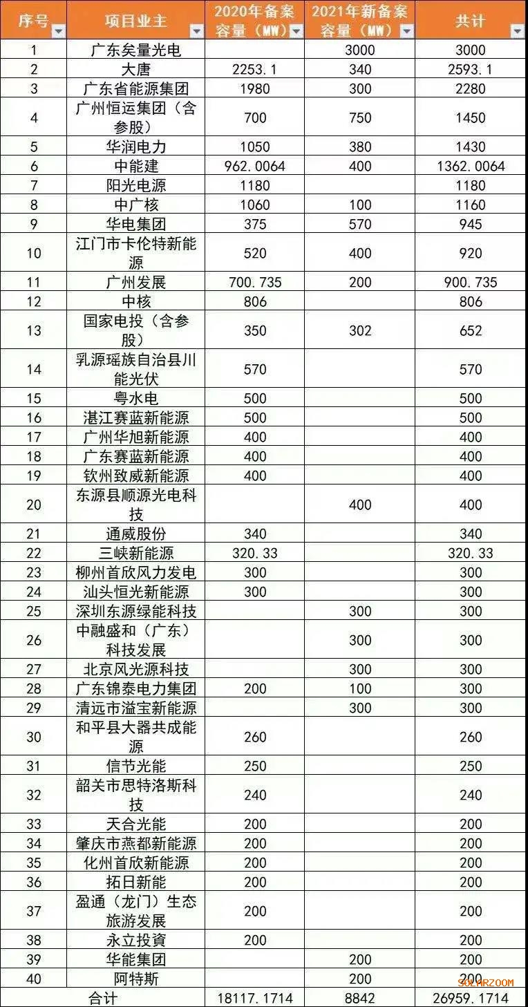 從上表可以看出,廣東能源集團(tuán)、中國能建廣東院、廣州發(fā)展等本地企業(yè)參與度也非常高,同時(shí)一些地方企業(yè)拿到的規(guī)模也非常可觀——廣東矣量光電股份有限公司更是一次性備案總建設(shè)規(guī)模3GW的10個(gè)光伏項(xiàng)目。