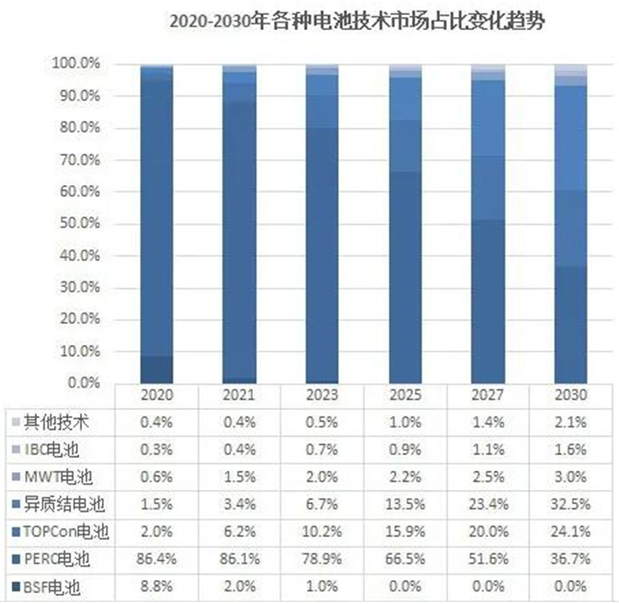 根據(jù)光伏協(xié)會發(fā)布的《中國光伏產(chǎn)業(yè)發(fā)展路線圖2020》,到2025年,上述N型電池市占率將達32.5%。