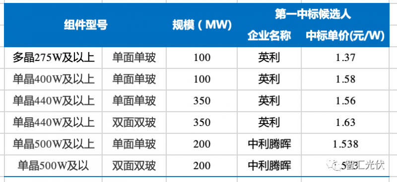 然而,根據(jù)評(píng)標(biāo)結(jié)果,實(shí)際多晶組件第一候選人價(jià)格為1.37元/W,單晶組件第一候選人價(jià)格在1.52~1.63元/W之間;因此,實(shí)際中標(biāo)價(jià)格可能遠(yuǎn)低于最高報(bào)價(jià)。