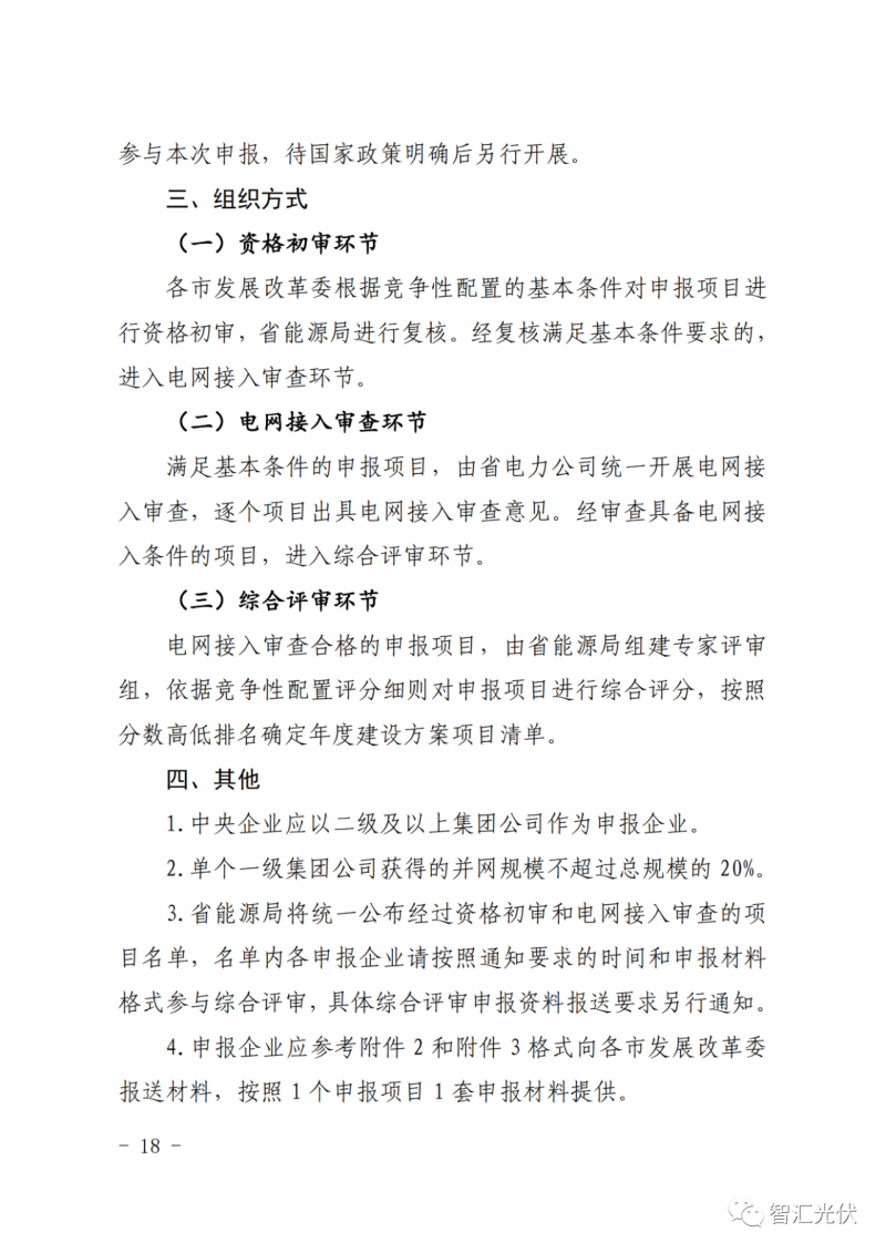 4)光伏項(xiàng)目:單個(gè)申報(bào)項(xiàng)目規(guī)模原則上不超過 20 萬千瓦。單個(gè)一級(jí)集團(tuán)公司第一次獲得的并網(wǎng)規(guī)模不超過該次競爭性配置規(guī)模的 20%,兩次累加獲得的并網(wǎng)規(guī)模不超過總規(guī)模的20%。