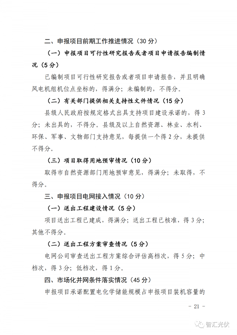 對(duì)于保障性規(guī)模,競爭性配置中未要求競電價(jià)、配置儲(chǔ)能項(xiàng)為45分,要求1小時(shí)、6000次。