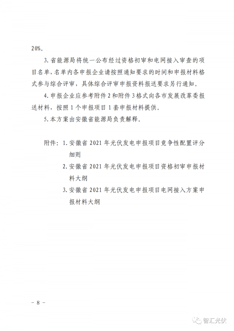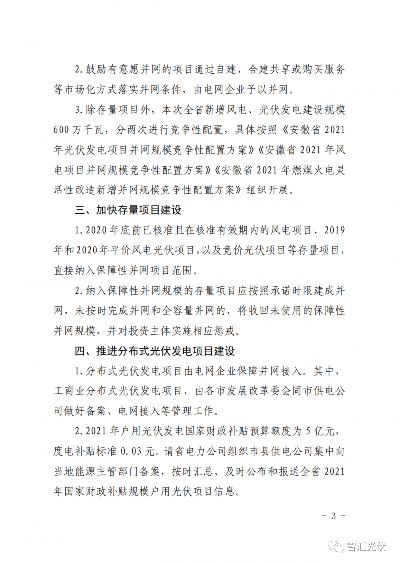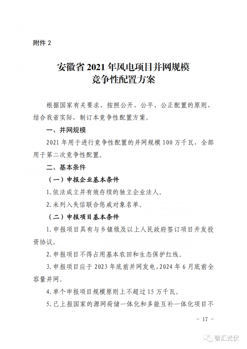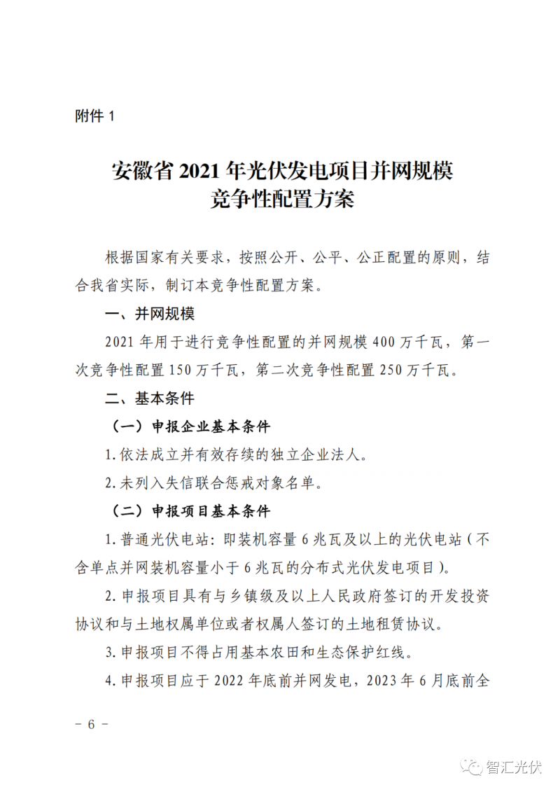 1)2021 年,安徽省此次共安排6GW保障性規(guī)模。其中,光伏4GW,風(fēng)電2GW,分兩次進(jìn)行配置。