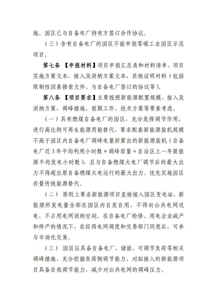 鼓勵具備新增負荷的園區(qū)開展零碳工業(yè)園示范項目,以零碳用能為發(fā)展目標,率 先開展全清潔能源供電,提升園區(qū)整體能效。園區(qū)新增負荷供電原則上 100%由新能源電量構成,對于配套新能源所發(fā)電量不能滿足園區(qū)供電時,所購買電量需為可再生能源綠電, 園區(qū)應通過配置儲能等措施,保證與園區(qū)負荷的匹配響應和高比例自平衡。